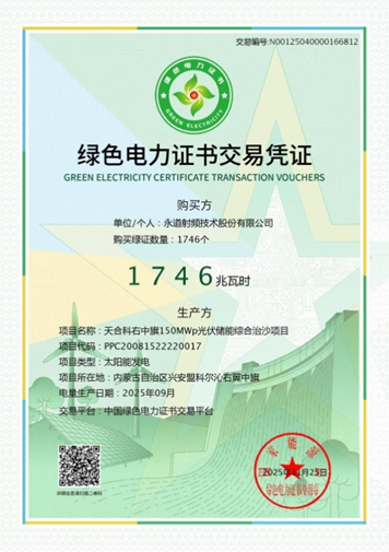 In 2025, the company conducted its first pilot purchase of one Green Electricity Certificate (1,000 kWh), formally incorporating externally sourced renewable energy into its energy mix and marking an important milestone in its participation in green electricity trading.
