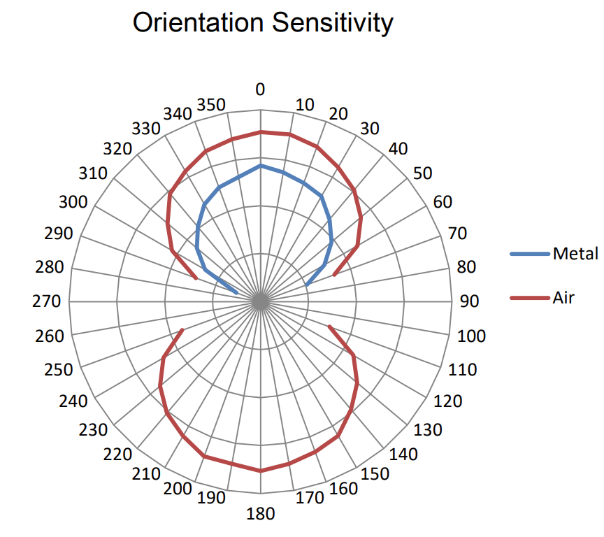 Inlay is rotated in the x,y axis, fixed in z axis (Tag shown at 0° with respect to face of antenna)