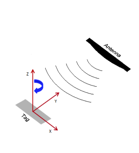 Inlay is rotated in the x,y axis, fixed in z axis (Tag shown at 0° with respect to face of antenna)