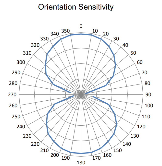 Inlay is rotated in the x,y axis, fixed in z axis (Tag shown at 0° with respect to face of antenna)