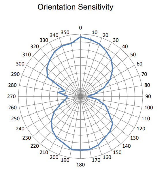 Inlay is rotated in the x,y axis, fixed in z axis (Tag shown at 0° with respect to face of antenna)