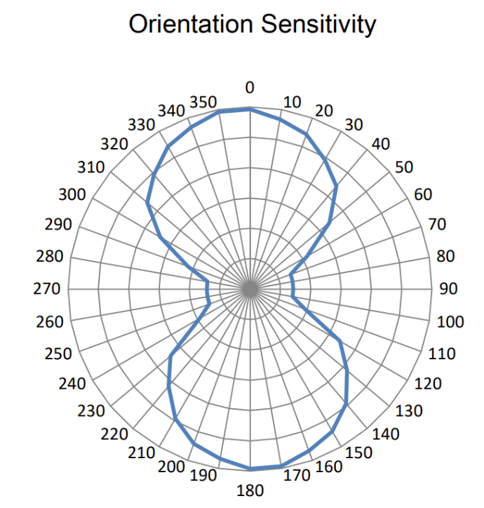 Inlay is rotated in the x,y axis, fixed in z axis (Tag shown at 0° with respect to face of antenna)