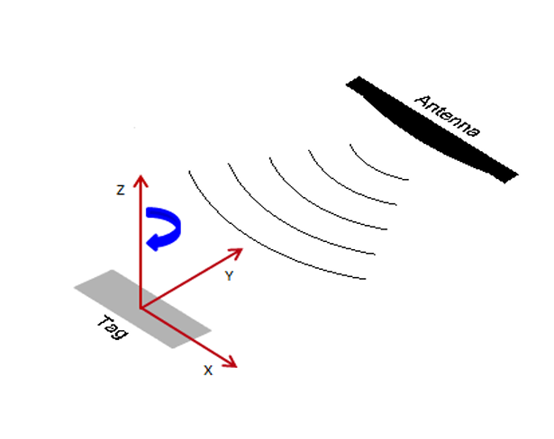 Inlay is rotated in the x,y axis, fixed in z axis (Tag shown at 0° with respect to face of antenna)
