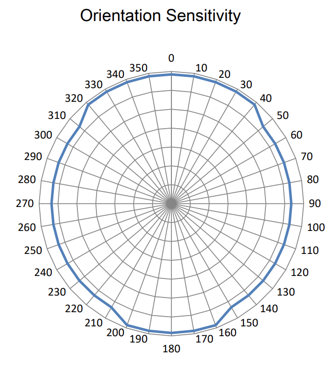 Inlay is rotated in the x,y axis, fixed in z axis (Tag shown at 0° with respect to face of antenna)