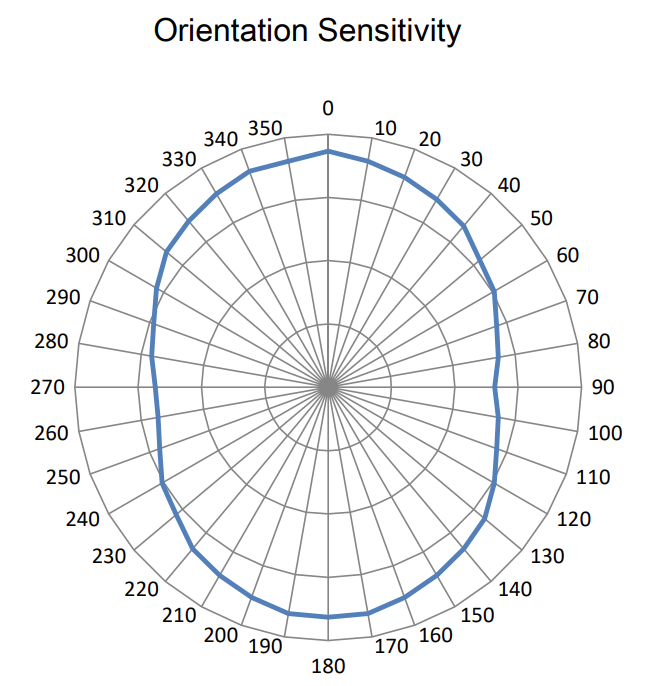 Inlay is rotated in the x,y axis, fixed in z axis (Tag shown at 0° with respect to face of antenna)