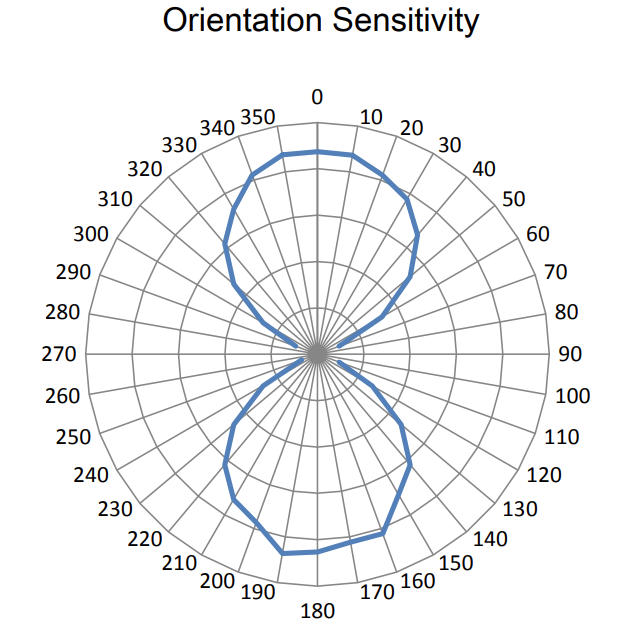Inlay is rotated in the x,y axis, fixed in z axis (Tag shown at 0° with respect to face of antenna)