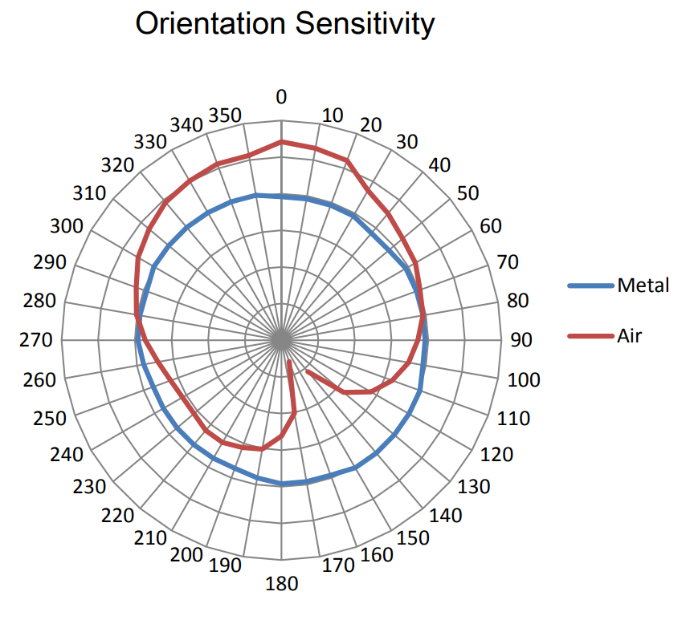 Inlay is rotated in the x,y axis, fixed in z axis (Tag shown at 0° with respect to face of antenna)