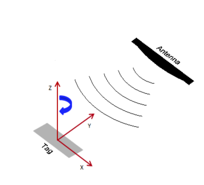 Inlay 在 x、y 轴旋转,z 轴固定(标签与天线正面成 0°)
